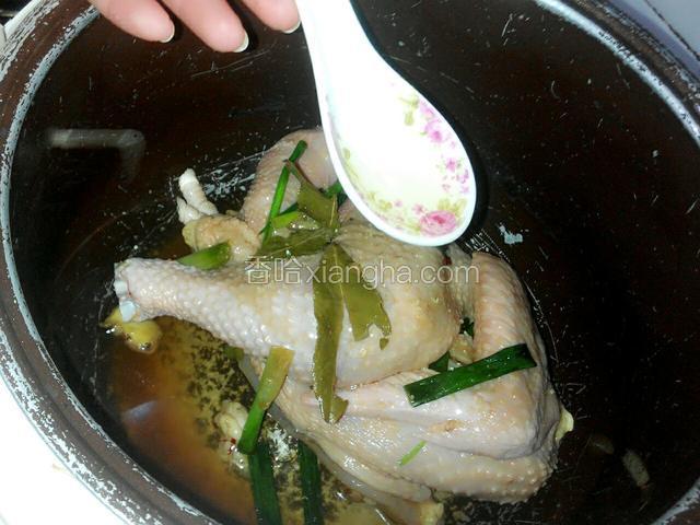 5.再把鸡放下,加一匙油和四至五匙的水,