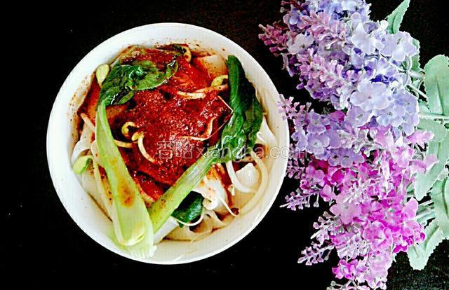 6.把醒好的荠子用擀面杖擀开,用手扯成长条,直至做好一碗扯面的量。