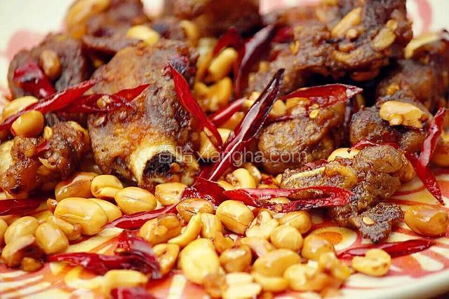 5.利用煮排骨的时间,另起锅倒入少许油,小火将花生米炒香。