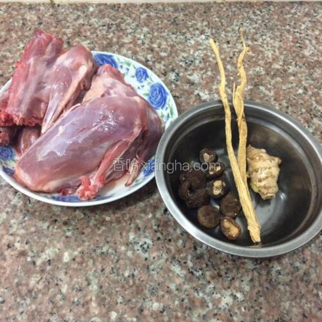 1.准备好食材,水鸭子一只清洗干净去皮,香菇,党参,姜。