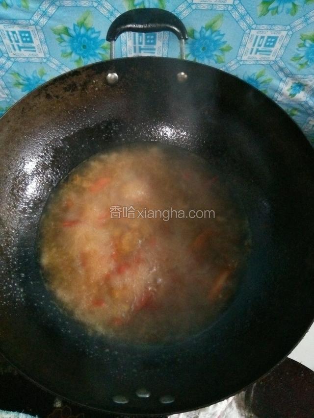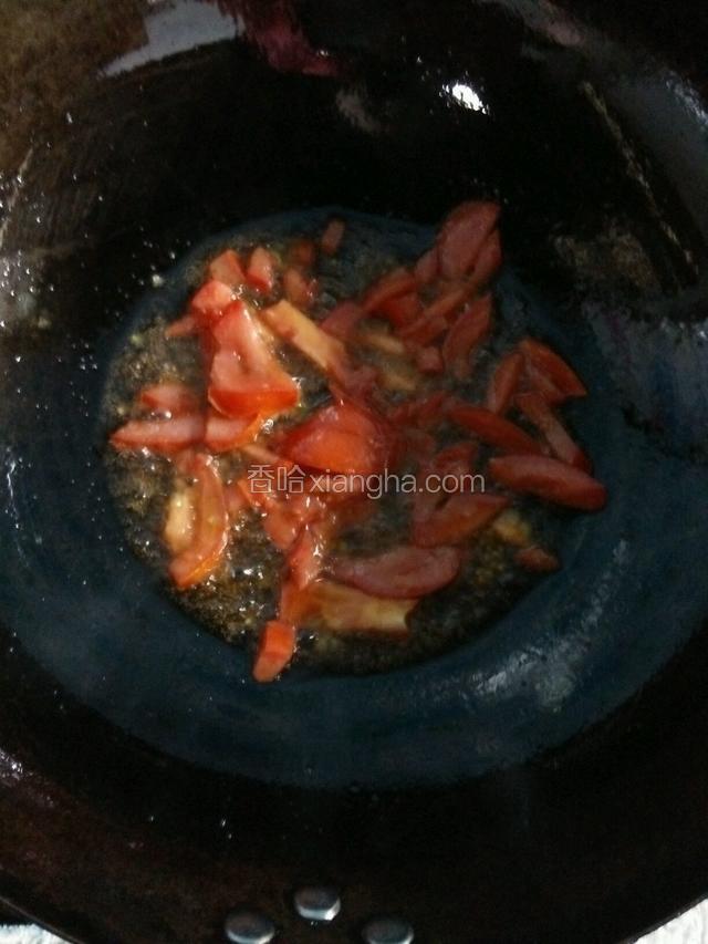1.锅内放适量油烧热,下西红柿翻炒。西红柿提前切小块。
