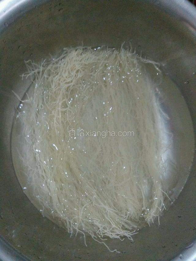1.把粉丝放入盆中,倒入温水泡5分钟左右