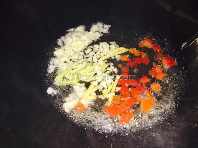 4.热锅冷油,下剁椒、姜、蒜爆香。