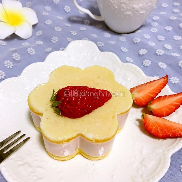 21.然后放入一小块蛋糕,作为蛋糕夹层;