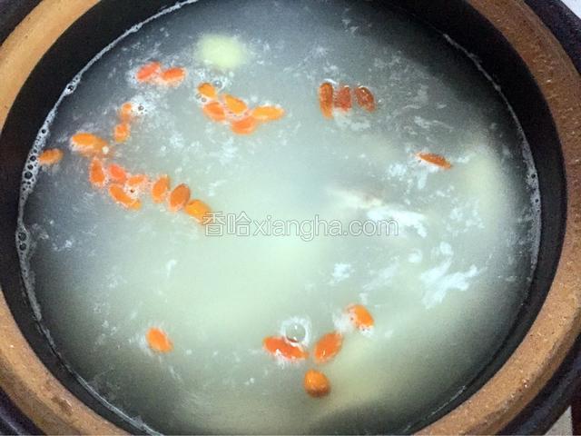 6.放入山药和枸杞炖20分钟