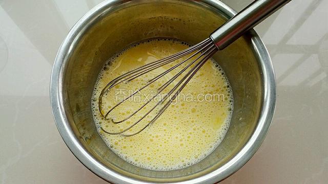 6.把搅拌好的抹茶粉和蛋奶液混合均匀,晾凉备用。
