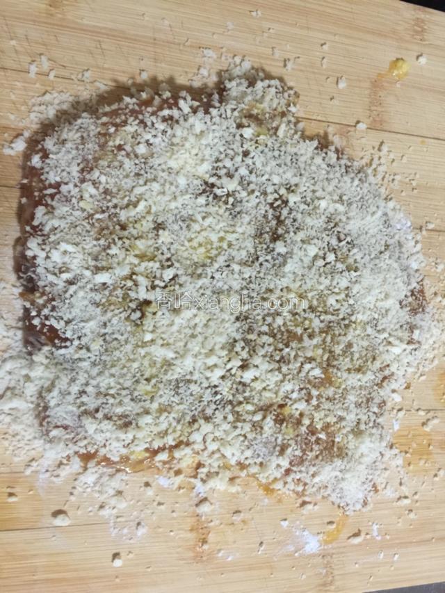 6.将鸡胸肉两面都均匀拍上干淀粉。