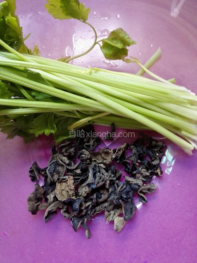 3.芹菜折成两段用淘米水加适量盐浸泡十分钟,去除残留农药。