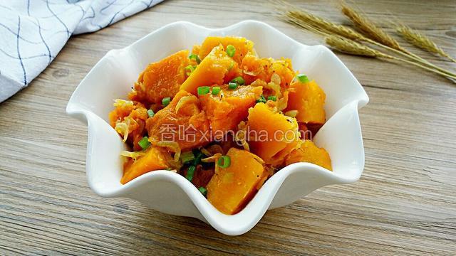 1.准备食材:南瓜去皮切块,小葱切成葱花。