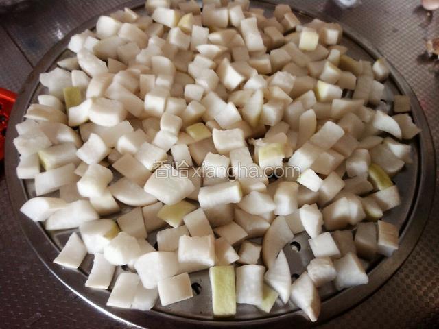1.萝卜洗净,不要去皮,皮的口感很脆,切小块,放适量粗盐,盐3个小时