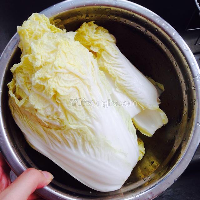 3.锅中倒油烧热后倒入白菜帮子翻炒一分钟
