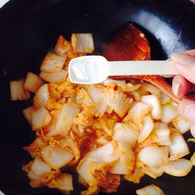 5.白菜稍微有点软塌时加入韩式辣酱翻炒