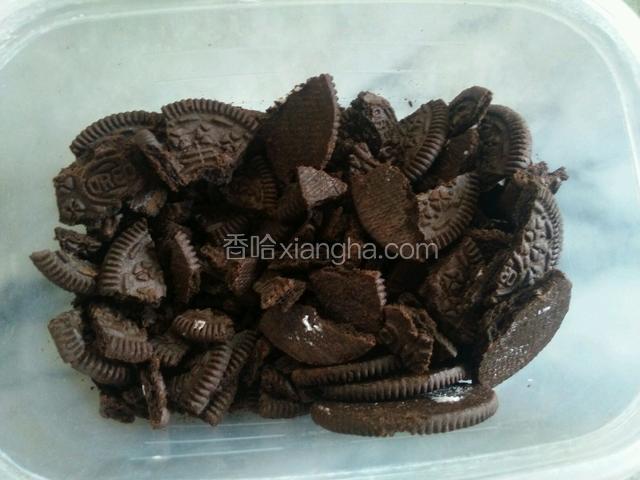 2.把它弄成饼干碎,我用擀面杖擀碎的