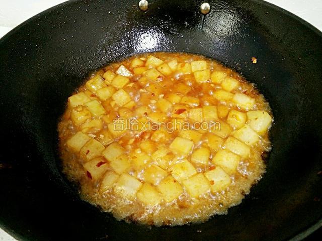 3.锅里放适量油烧热,加入姜粒、蒜粒、豆瓣酱炒出香味。