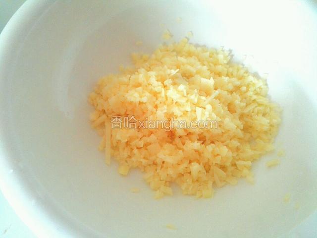 2.土豆先切片再切丝最后剁碎放置大碗里