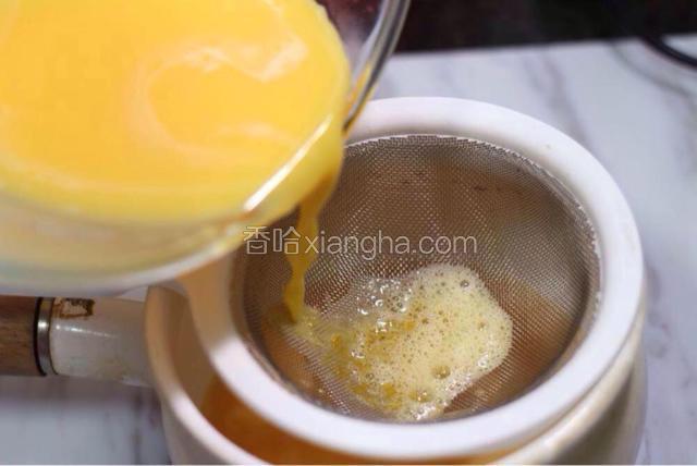 6.最好将蛋黄牛奶液过筛一遍重新倒入奶锅,这样冰淇淋口感更细腻些。