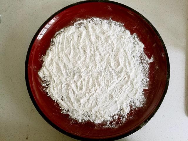 5.接着另取一盘,铺一层面粉。