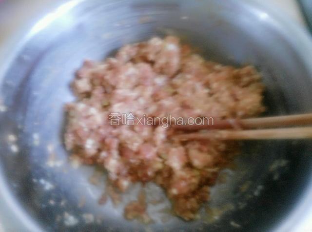 4.盆里放入肉馅,加入盐,耗油,酱油,糖,油拌匀
