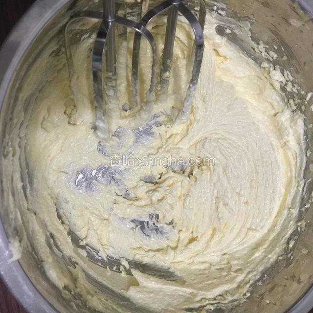 4.再倒入打散的鸡蛋,打蛋器打至蓬松。