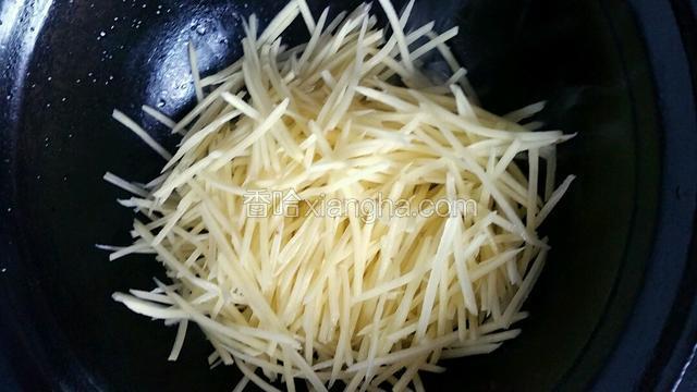 2.土豆去皮用工具切丝,用凉水捞2遍去除多余的淀粉,沥出备用