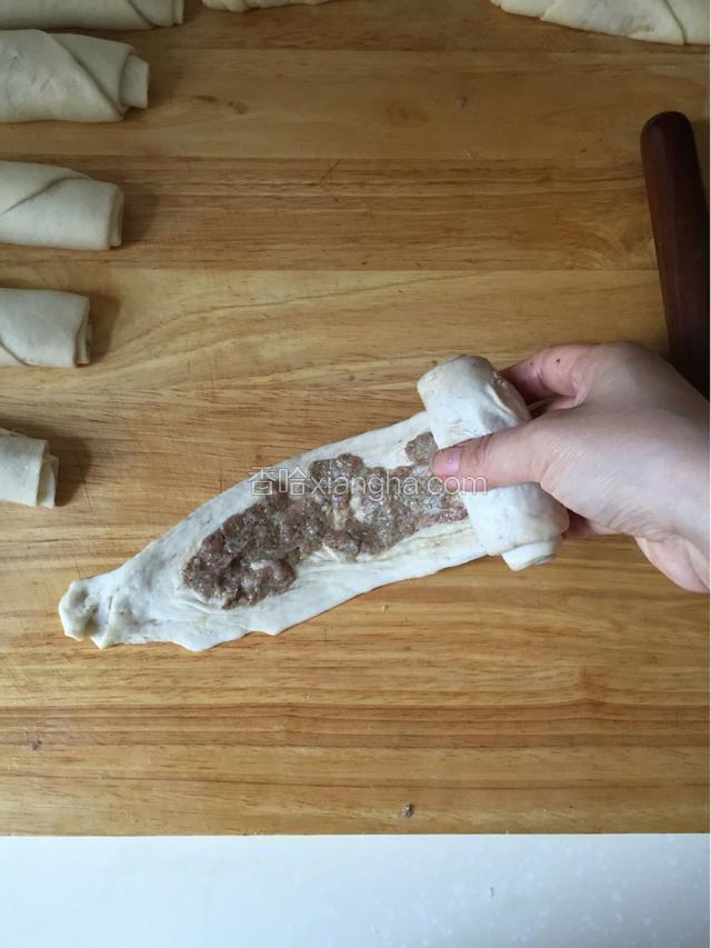 6.肉丁倒入一半的花椒盐,胡椒粉,葱姜,油末后拌匀搅打成泥。