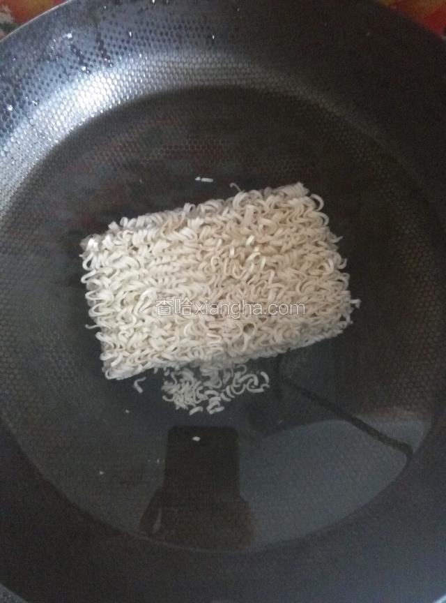 2.锅里加水煮面饼5分钟后捞出放在凉水里