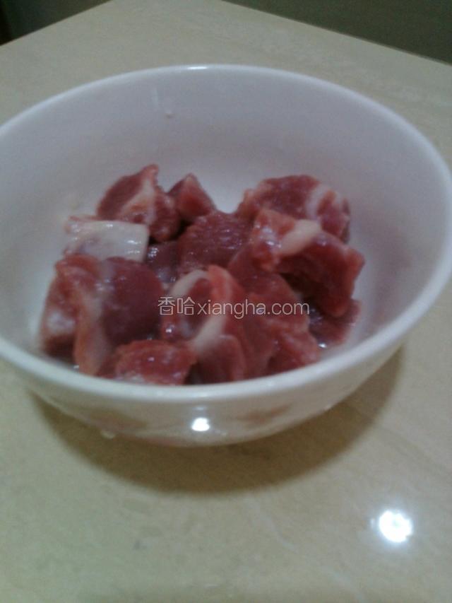 3.将猪肉切成小丁放在碗里,备用。(我切的好像有点大。)切成肉末也行
