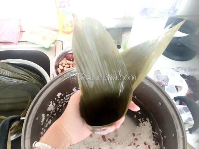 1.干粽叶用凉水冲洗干净,浸泡一夜,然后已经,锅里煮一下然后过凉水备用。