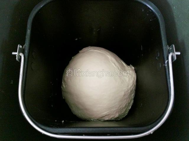 4.将中种面团撕成块和主面团放入面包机揉至完全阶段。