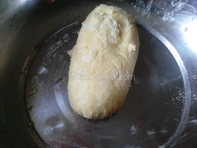 6.把面分成大小均匀的剂子,幹成片放入锡纸模具中扎小孔