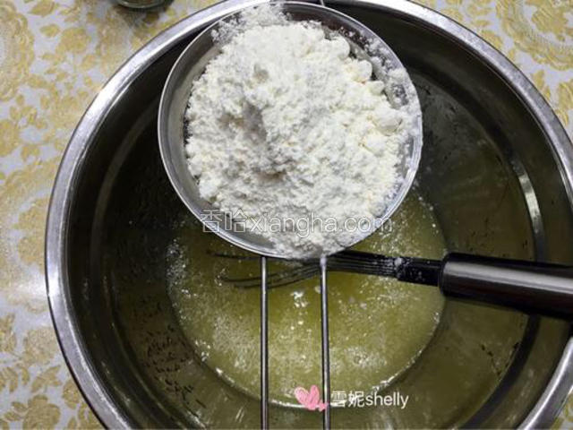 2.蛋清、食盐和色拉油一起倒入无水的打蛋盆,用手动打蛋器搅拌均匀。