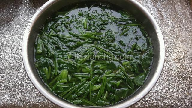 5.放入锅中大约40秒就好,为了去除菠菜中的草酸!