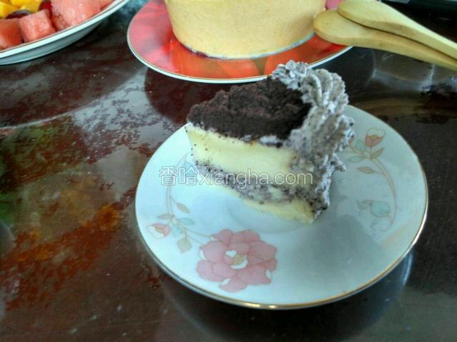 6.一片蛋糕坯放下面,然后抹一层奥利奥奶油夹心。