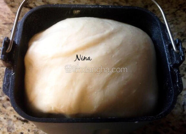 3.酵母放在酵母盒中,设定面团选项,揉面加发酵大约一个半小时。