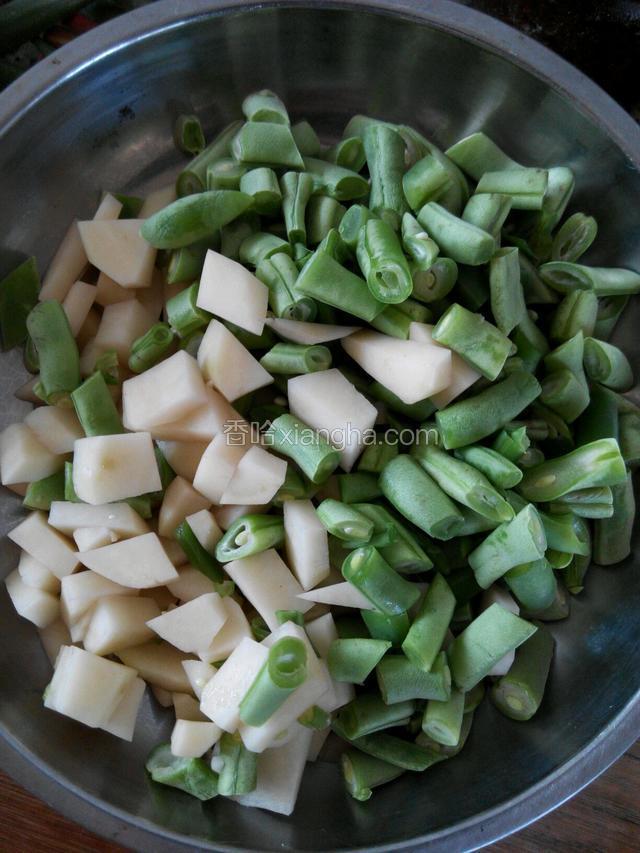3.猪肉选有肥有瘦的最好,洗净,去皮,切丁