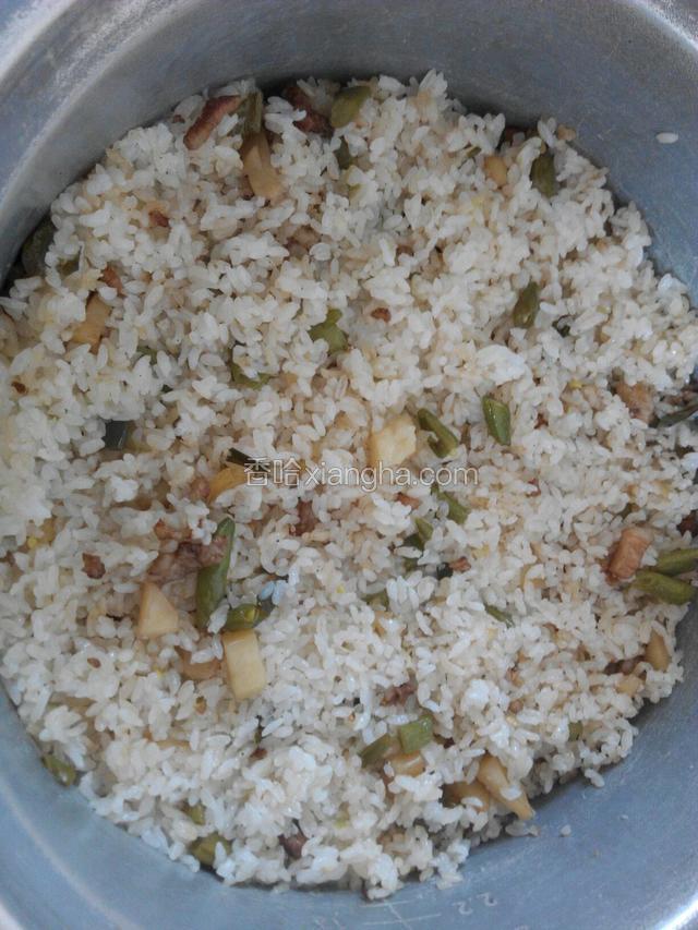 4.提前把米淘好,放电饭锅里蒸上,可以适当比平时多放一点水