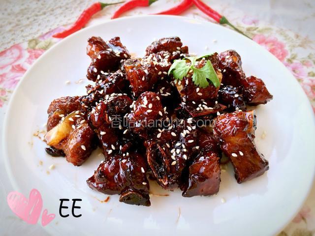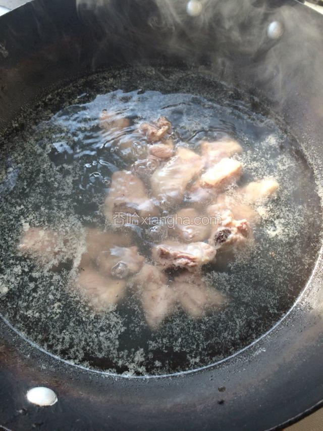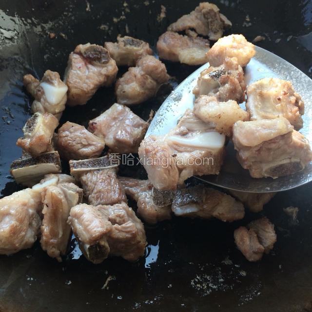 4.锅热放油炒排骨。这里不能炒太久,不然肉会老。