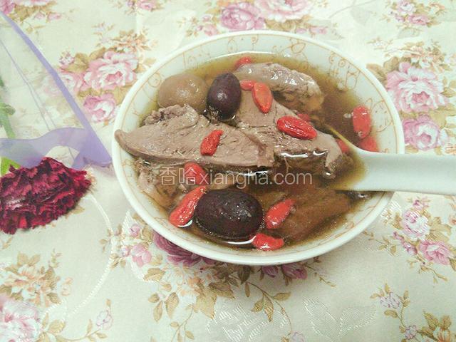 3.加盖炖一小时,捞起猪心切片,下枸杞,盖上盖焖一会即可。