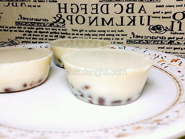 6.將椰漿、淡奶油和紅豆加入糖水溶液中拌勻
