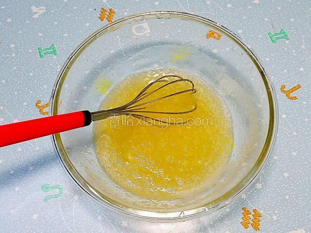 5.已漲大的吉利丁溶液倒入糖水裡,邊倒入邊攪拌,小火煮沸離火