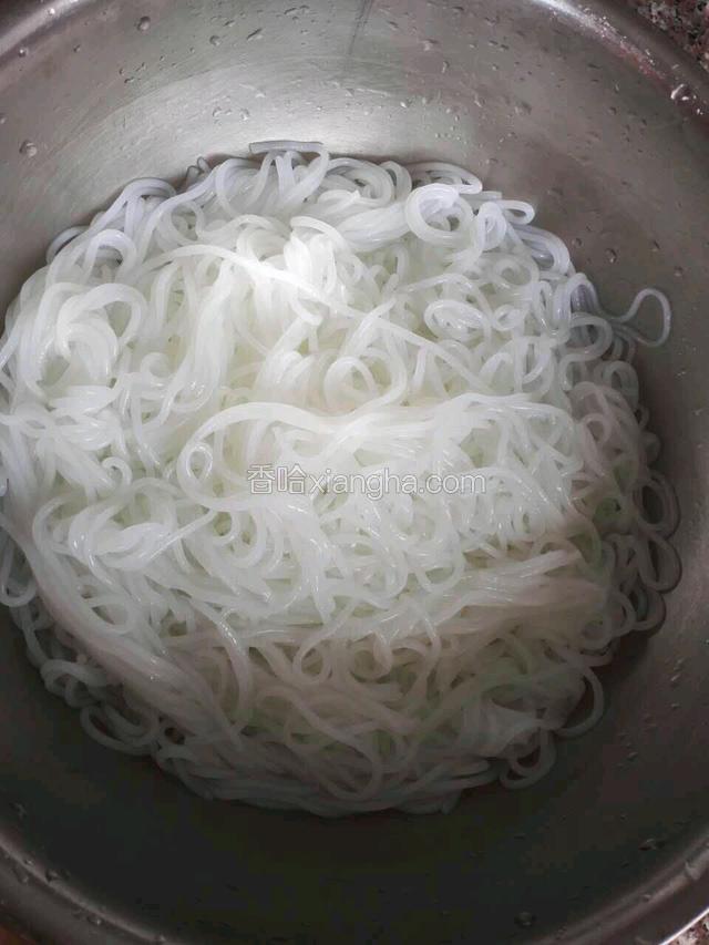 1.锅加水烧开放粉丝煮软 软的程度到用筷子能夹断 关火 米粉挑出放入冷水