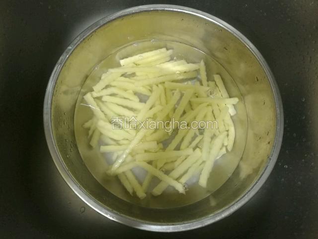3.把切好的土豆条,清洗几遍,然后用水泡几分钟。