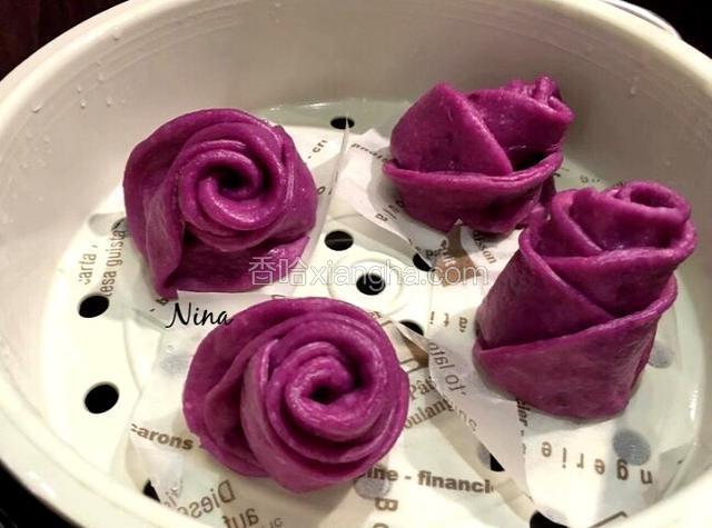 6.蒸锅内倒入45度左右的温开水,把馒头放在油纸上直接放入锅中(盖上锅盖)进行二次发酵,大约30分钟即可。