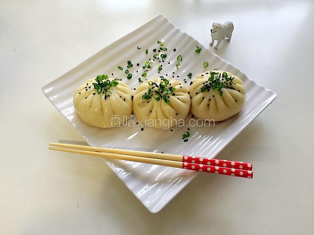 2.4克酵母粉加少许材料中的40度以下温开水化开,倒入面粉中,再倒入剩下的温水,將面和成光滑的面团,盖上保鲜膜放到一边等待发酵