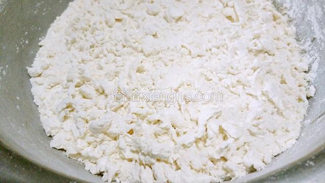 4.把打入鸡蛋的面粉用手搅拌成雪花状