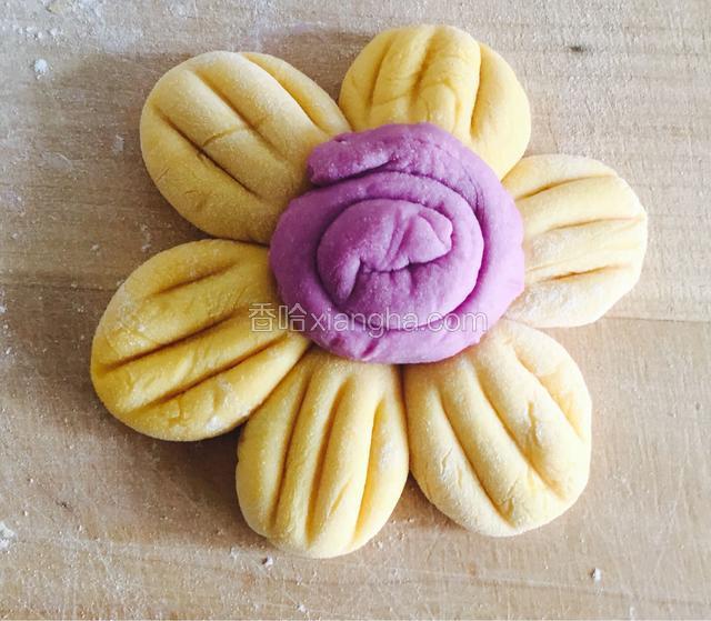 1.南瓜和紫薯各去皮切块分开放蒸锅蒸熟,捣碎成泥冷却到三十度左右分别加入酵母融化和面,南瓜面团室温发酵如蜂窝状