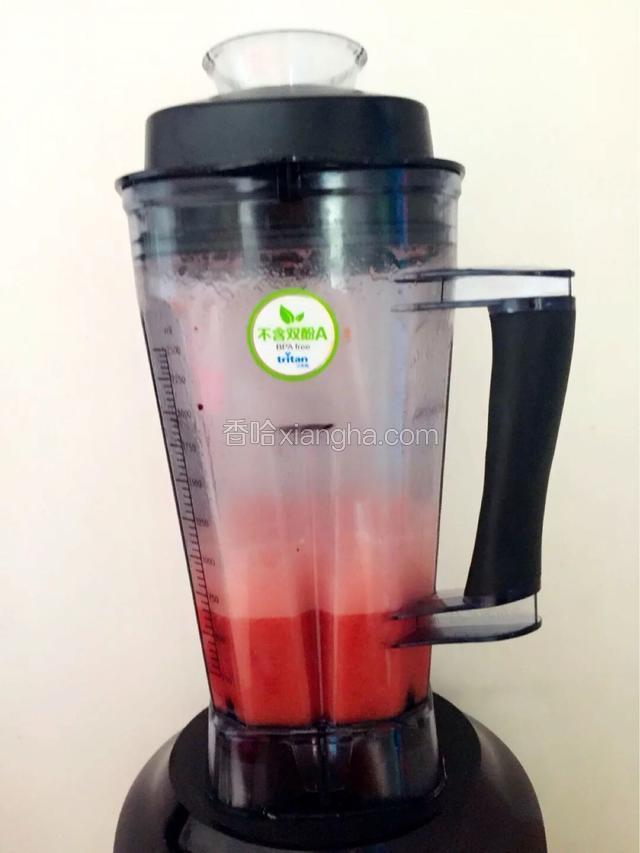 3.将西瓜和樱桃放入九阳破壁料理机中加入适量水