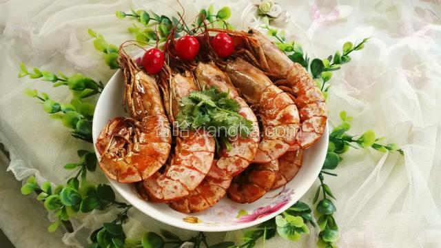 5.把汁倒入锅中,小火炖一会让每个虾吸入汤汁收干。