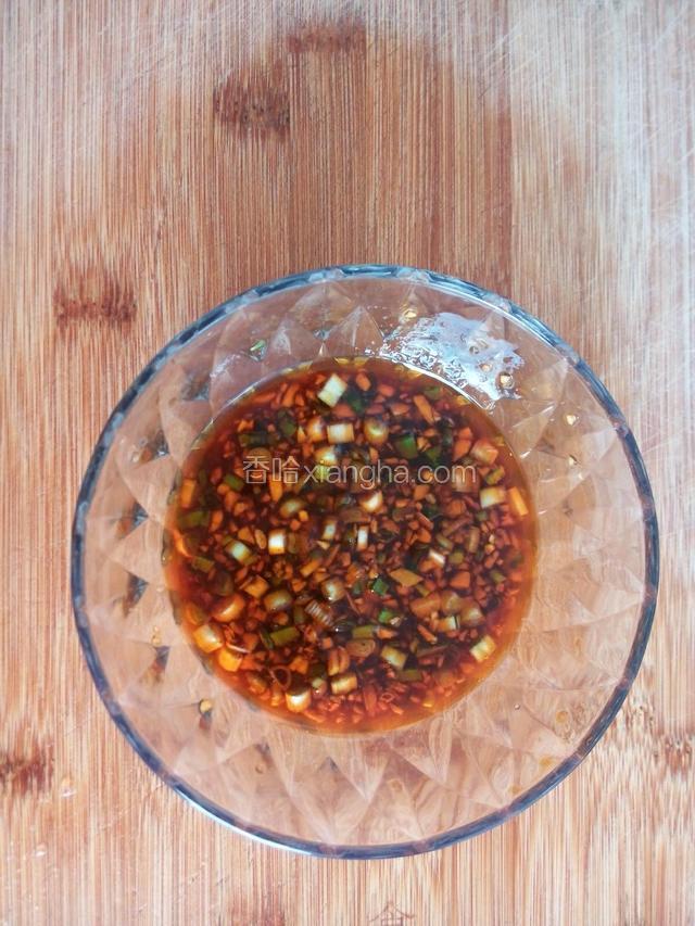 3.放在碗里,加陈醋、生抽、盐、芝麻油、辣椒油拌匀