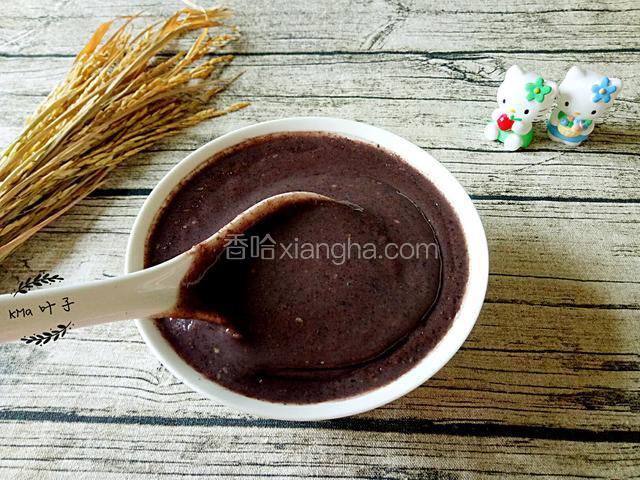 4.把黑米和芝麻放进搅拌机,加入少许黑米水一起搅拌成浓浆。